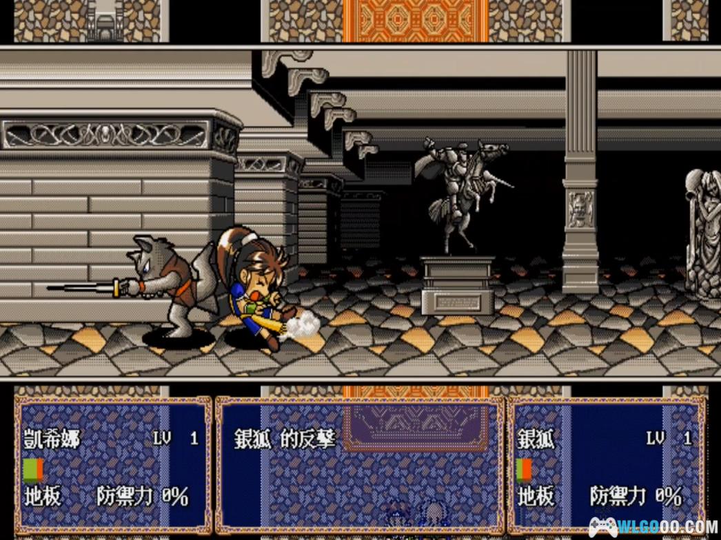 (这一关的亨利会"瞬间大挪移",当接近他时竟忽然地跑到正下方的门口处,这样两人就要对付中间的一大群敌军了,而如果凯希娜这时达到了一定的等级时也会练成瞬间移动,追上去一剑搞定,否则就只有一步一步地往下打了。)