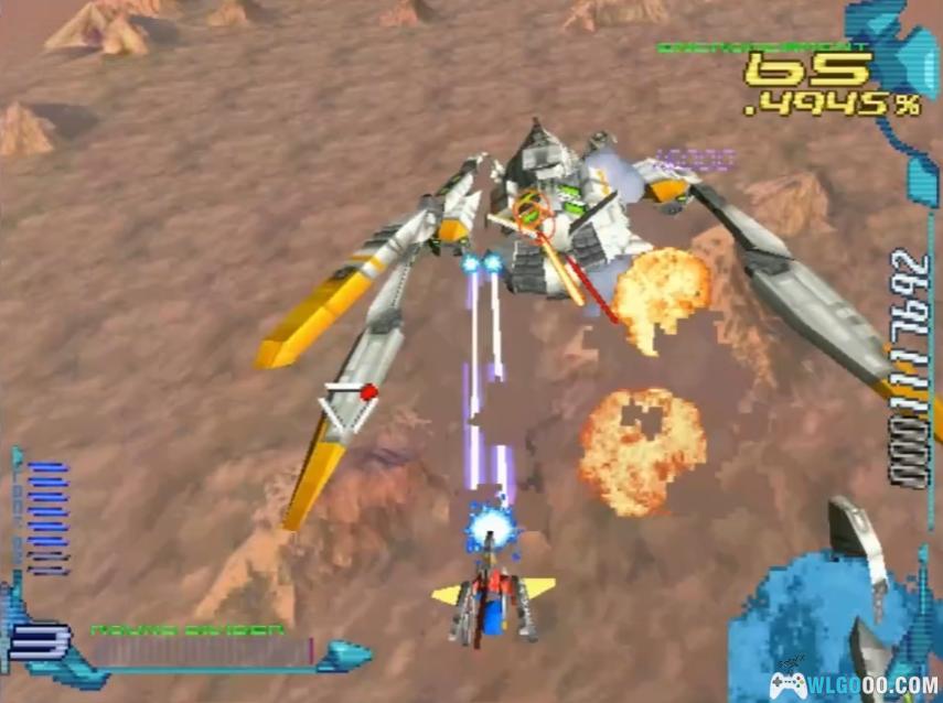 - 画面表现:作为一款 PS1 游戏,它采用了全 3D 画面,在当时具有一定的视觉表现力,纵深感与粒子特效远超同期作品,甚至被玩家赞为“媲美PS2画面”。游戏机制是 2D 玩法 ,为垂直滚动射击类型 。玩家以上方视角操控飞船 。