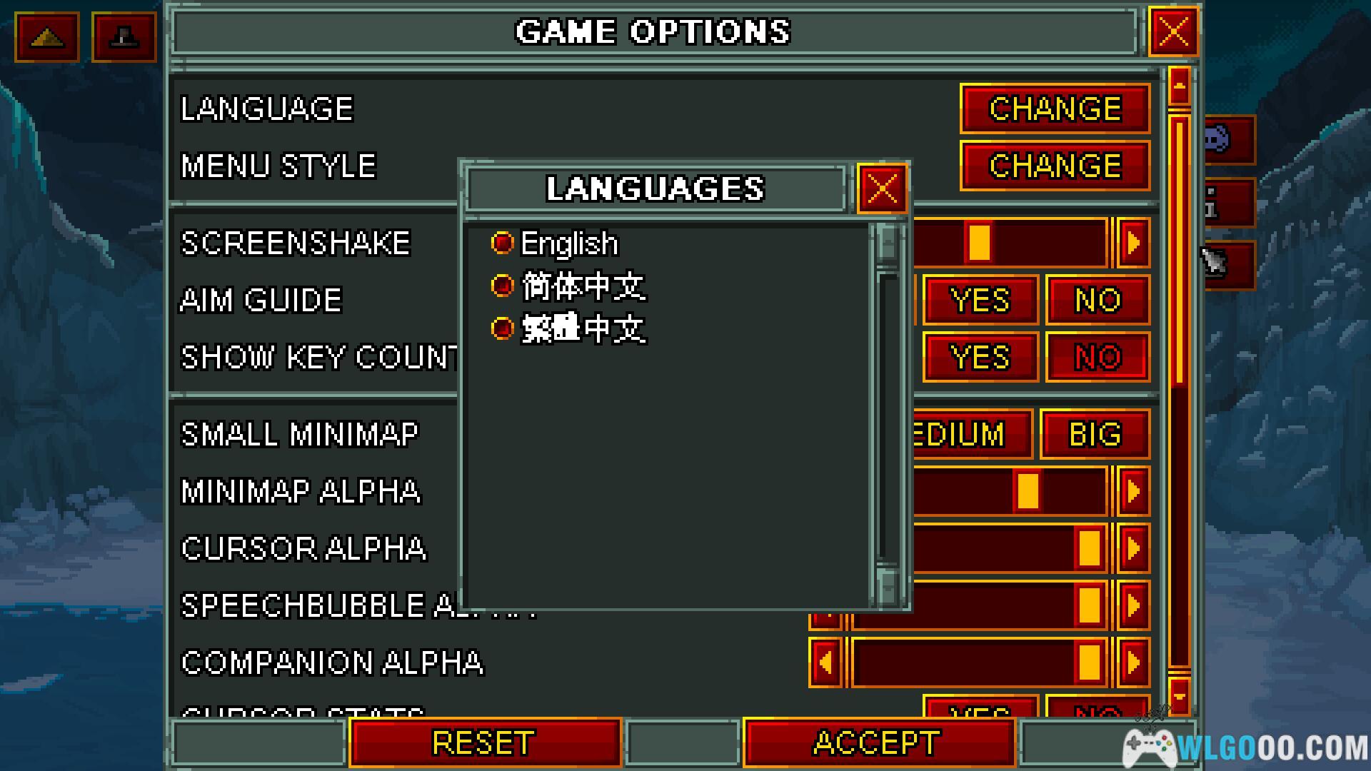 中文修改:请进入设置-GAME-LANGUAGE-选择简体中文,如图下所示。