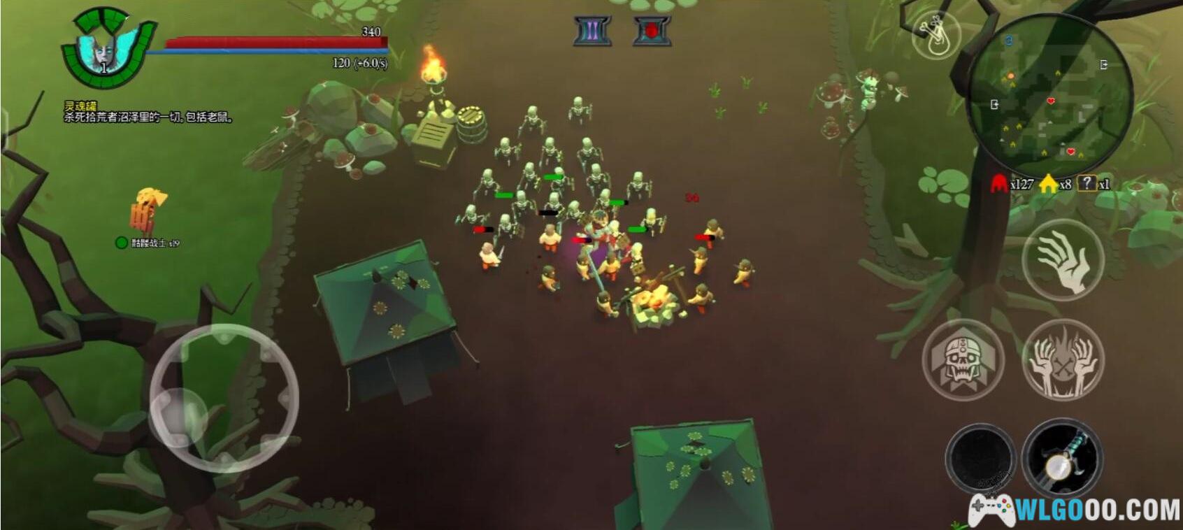 - 招募战士:玩家可从敌人的遗骸中培育不死战士,游戏中约有 20 种独特的不死生物可供收集和升级,每个单位都有独特的特点。