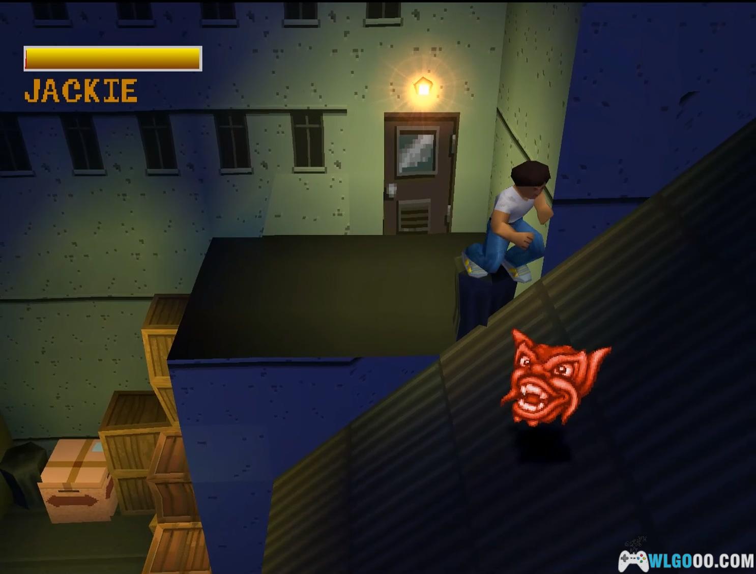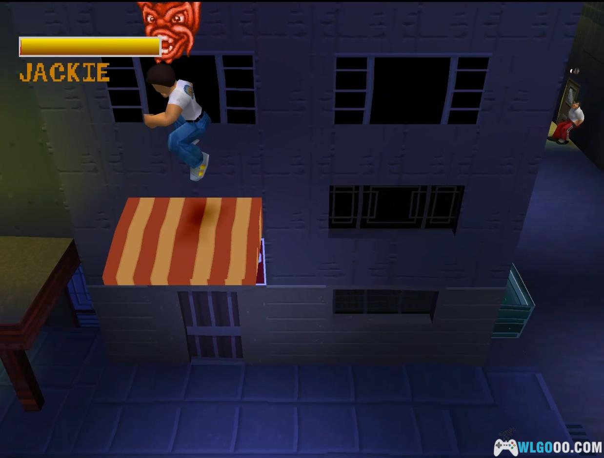 可将石块推至龙首下方后跳跃获取,或利用墙壁二段跳。解决此处敌人以解锁房门,屋内有两名敌人,击败后爬上右侧的箱子堆至顶部,再向左走,对面有第三个龙首和一名敌人,拿到龙首后跟上敌人并击败他。拐角处可见第四个龙首,获取后从开口处离开,触发成龙沿钢丝滑下并撞落路灯、掉进两个桶里的 FMV 动画。