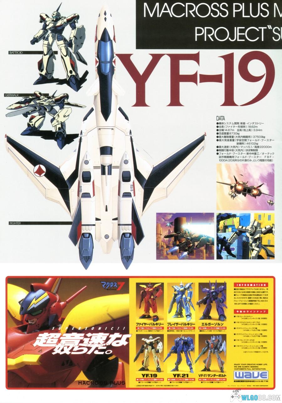 《超时空要塞PLUS》动画的官方画集 ,详细展示了剧中各类机体设定,如 YF-19 “王者之剑” 和 YF-21 战斗机,涵盖外观与变形。