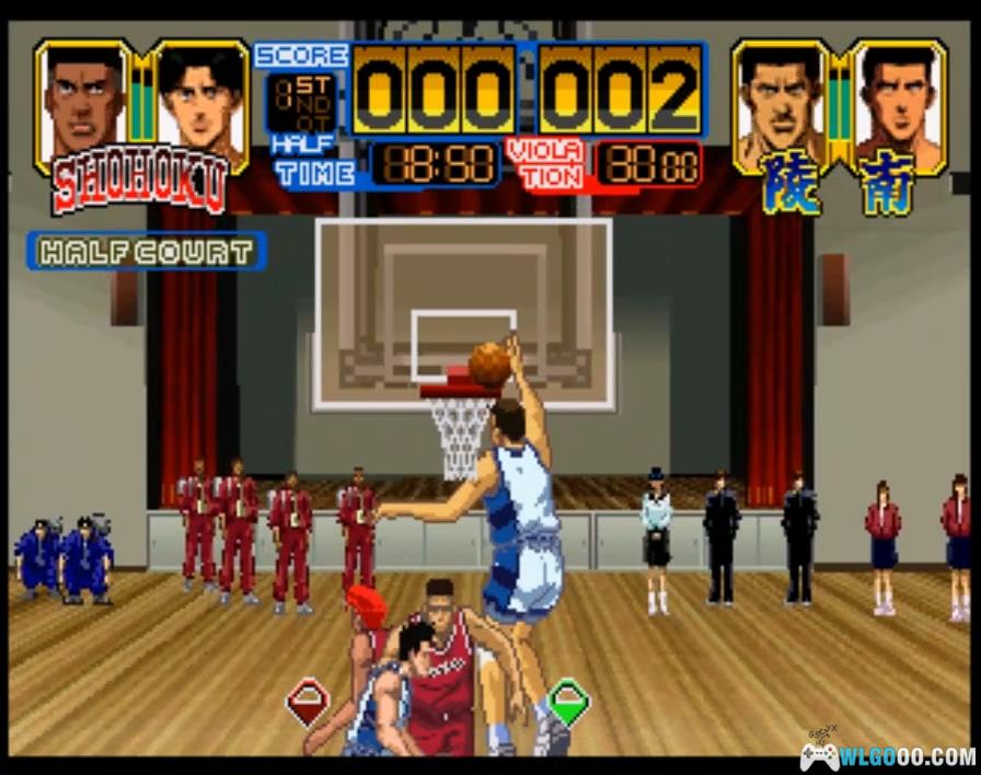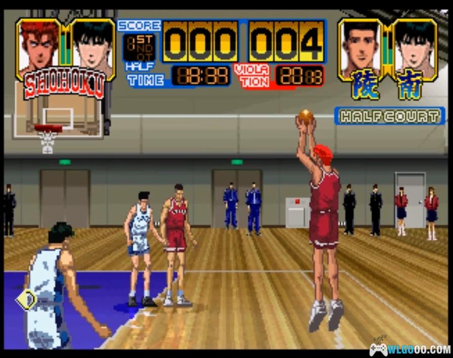 游戏基于经典动漫《灌篮高手》改编,玩家可选择动漫中的角色参与篮球比赛。画面采用日式动漫风格,赛场为 3D 背景搭配 2D 人物。同时,游戏收录了大量原作动画片段作为过场,更邀请动画原班声优为角色配音,是一场视听盛宴。